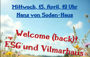 Du bist hier: Home1 / Welcome Back! ESG und Vilmarhaus starten in das Sommersemester2 / Welcome (back)! ESG und Vilmarhaus starten in den Sommer